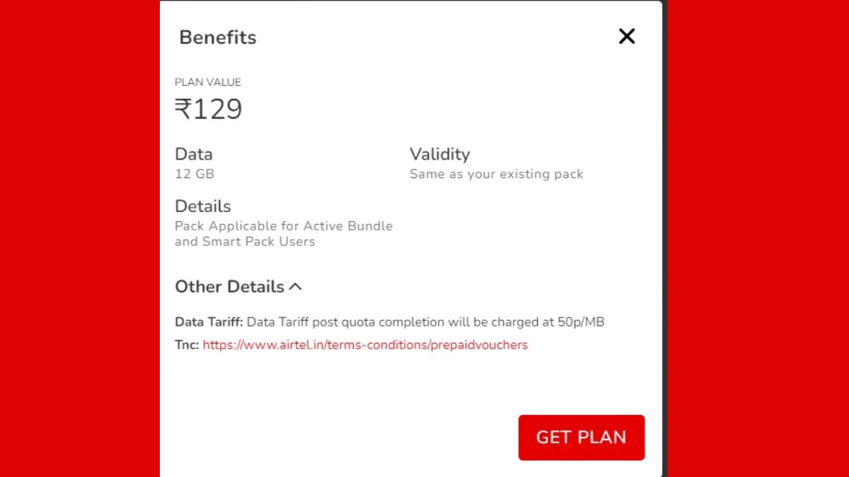 इस रिचार्ज प्लान पर ग्राहकों को पहले की तरह ही 12GB डेटा ऑफर किया जा रहा है। इस प्लान की वैलिडिटी आपके पहले से एक्टिव प्लान जितनी ही रहेगी। यानी यह प्लान केवल आपकी एक्स्ट्रा डेटा की जरूरत को पूरा करेगा, जिसे डेटा ऐड-ऑन प्लान की तरह इस्तेमाल किया जाता है।