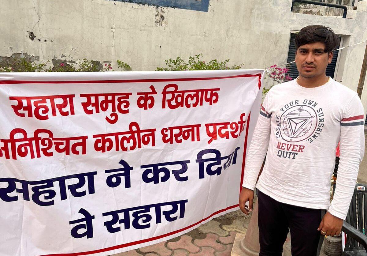 सहारा दफ्तर के सामने बेमियादी धरने पर बैठे चंद्र किशोर यादव ने बताया कि कुछ दिनों तक तो उन्हें पैसे मिलते रहे, लेकिन बाद में सहारा ने पैसे देने बंद कर दिए। बार-बार चक्कर लगाने के बावजूद उसे पैसे नहीं मिले। आखिर, मजबूर होकर उसे अपनी बीमार मां के साथ बेमियादी धरने पर बैठना पड़ा। उन्होंने बताया कि सहारा कंपनी की वजह से उसके पिता सदमे से अपना मानसिक संतुलन खो चुके हैं। उनका गाजियाबाद में इलाज चल रहा है।