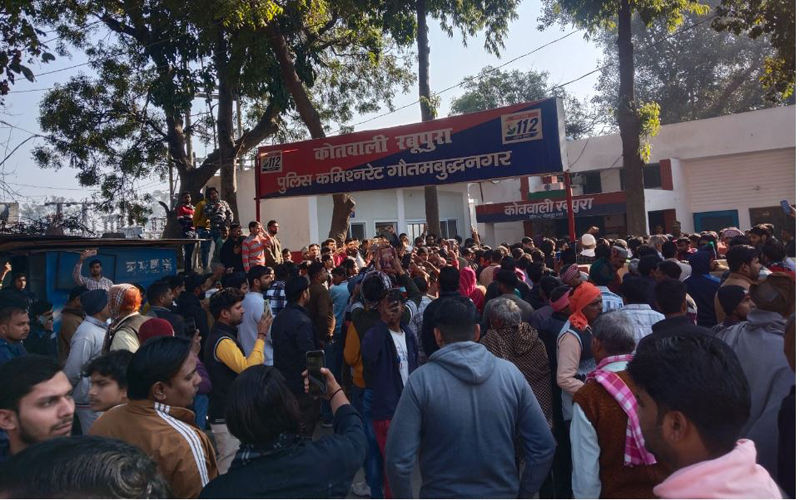Greater Noida News : ग्रेटर नोएडा में एक खेत पर 3 वर्षीय मासूम बच्ची के साथ दरिंदगी किए जाने के विरोध में गुसाए ग्रामीणों ने शुक्रवार को रबूपुरा थाने का घेराव किया। मौके पर मौजूद लोगों ने पुलिस के खिलाफ जमकर नारेबाजी भी की। गुसाए लोगों की मांग थी कि आरोपी के घर पर बुलडोजर चलवाया जाए।