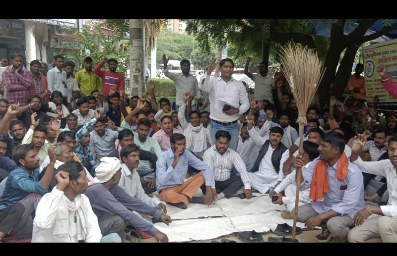यमुना प्राधिकरण के बाहर 250 सफाई कर्मचारी मांगों को लेकर धरने पर बैठे
