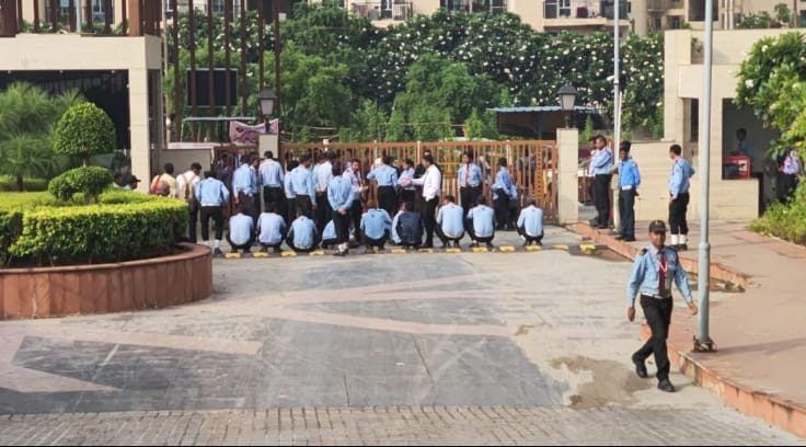 महागुन मायवुड्स सोसायटी में वेतन न मिलने से गुस्साए सुरक्षाकर्मियों का हंगामा, मौके पर पहुंची पुलिस