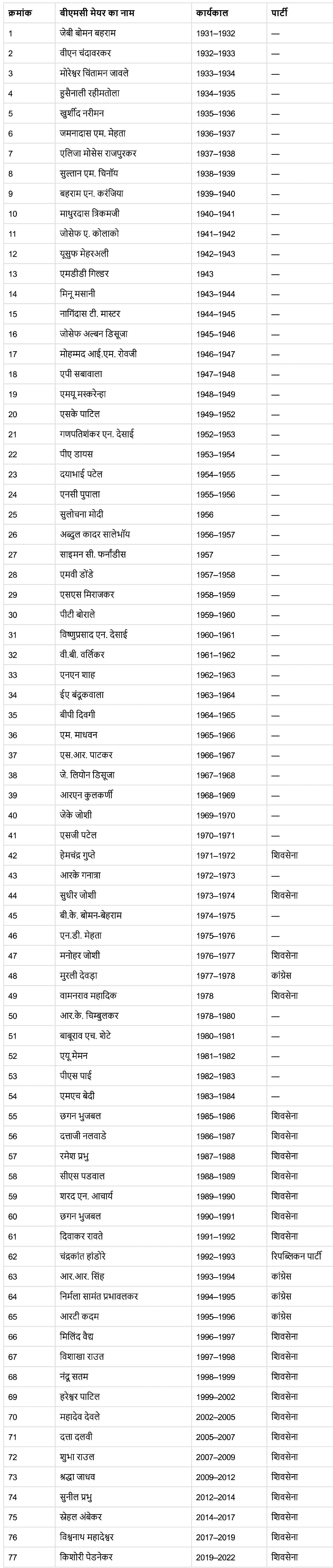 यहां देखें 1931 से 2022 तक बीएमसी मेयर की पूरी सूची