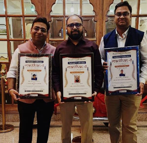 डॉ निशांत गुप्ता को क्लीनिकल इमीनेंस डॉक्टर मोहित को गुरु द्रोणाचार्य फिजियोथैरेपी अवार्ड से सम्मानित किया गया। राजस्थान के हनुमानगढ़ में आयोजित राष्ट्रीय फिजियोथैरेपी सम्मेलन "मंथन 2" में गाजियाबाद के वरिष्ठ फिजियोथेरेपिस्ट डॉ नमित वार्ष्णेय को अटल फिजियोथैरेपी सेवा अवॉर्ड, और डॉ मोहित कुमार को गुरु द्रोण फिजियोथेरेपी अवार्ड, डॉ निशांत गुप्ता को क्लिनिकल एमिनेंस फिजियोथैरेपी पुरस्कार से सम्मानित किया गया। यह सम्मान उन्हें 18 साल से फिजियोथैरेपी क्षेत्र में उत्कृष्ट योगदान के लिए दिया गया है।
