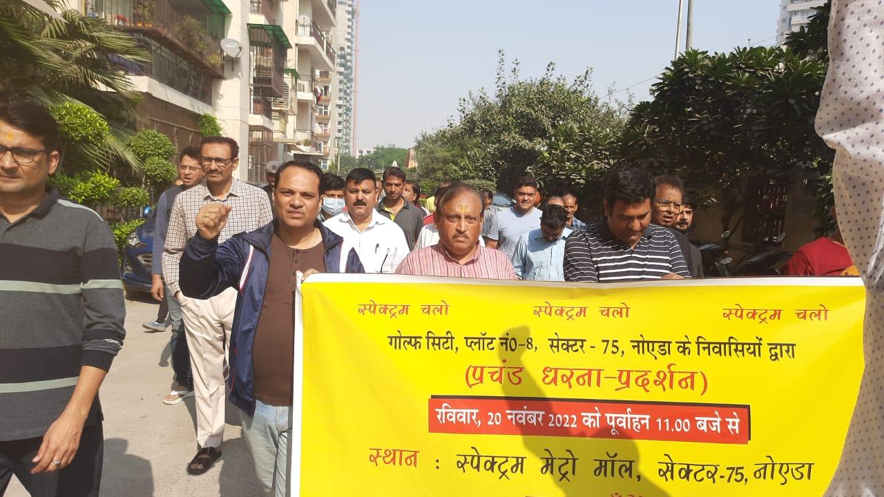 Noida News : गोल्फ सिटी के निवासियों ने किया एएमजी डेवलपर्स के विरुद्ध जोरदार प्रदर्शन