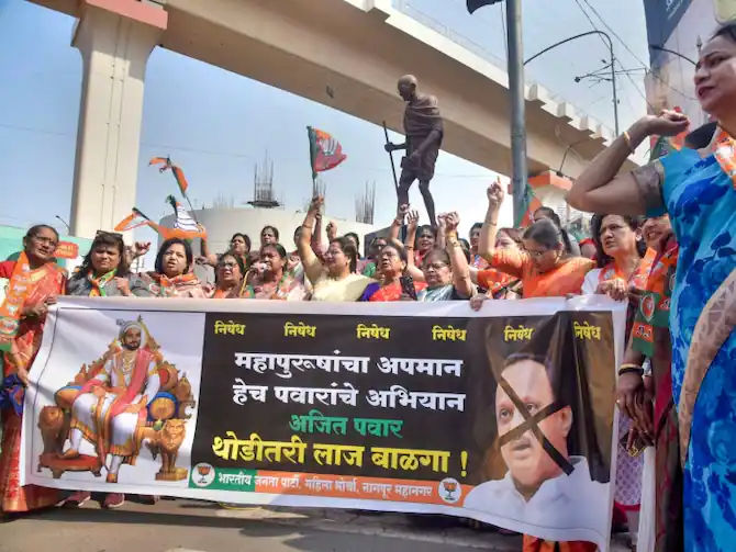 BJP protests against Ajit Pawar's remarks on Sambhaji Maharaj