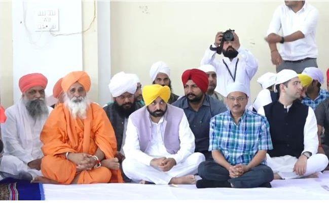 Punjab : भगवंत मान और अरविंद केजरीवाल ने जालंधर स्थित डेरा सचखंड बल्लां में मत्था टेका