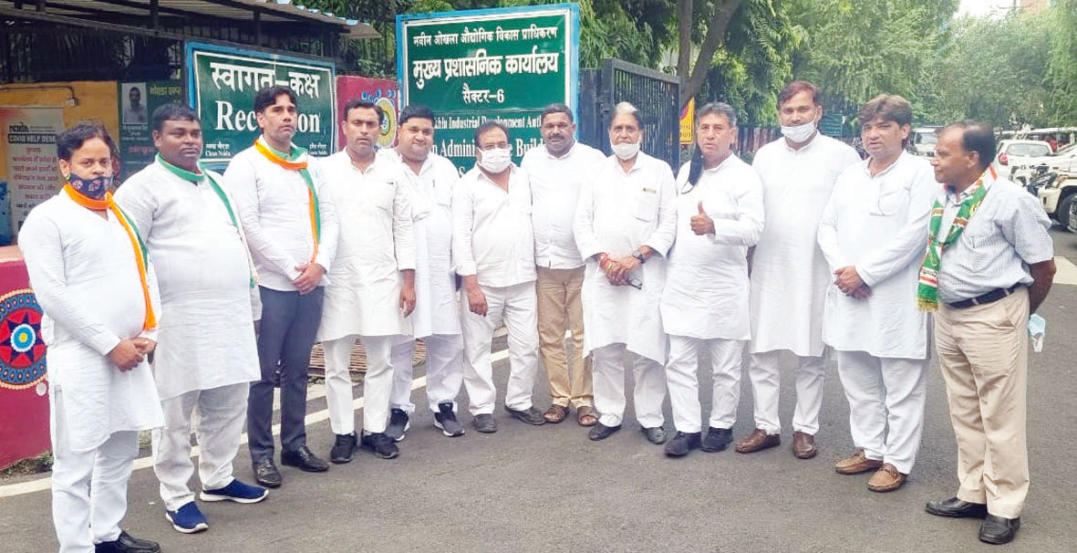 नोएडा (चेतना मंच)। उत्तर प्रदेश कांग्रेस कमेटी द्वारा बनाया गया एक प्रतिनिधिमंडल पूर्व मंत्री सतीश शर्मा व पूर्व मंत्री दीपक कुमार के नेतृत्व में जेल में किसानों से मिलने के लिए जिला कारागार गया लेकिन प्रशासन द्वारा तानाशाही रवैया अपनाते हुए किसानों से मिलने नही दिया गया। उसके बाद प्रतिनिधिमंडल अपर पुलिस आयुक्त लव कुमार से मिला और सभी किसानों को बिना शर्त छोडऩे की मांग की।