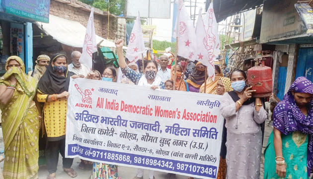 नोएडा। रसोई गैस के बढ़े दाम वापस लो, बढ़ती महंगाई पर रोक लगाओ आदि जोरदार नारों के साथ अखिल भारतीय जनवादी महिला समिति प्रदर्शन कर सरकार से रसोई गैस के दामों में की गई वृद्धि को तुरंत वापस लेने की मांग की।