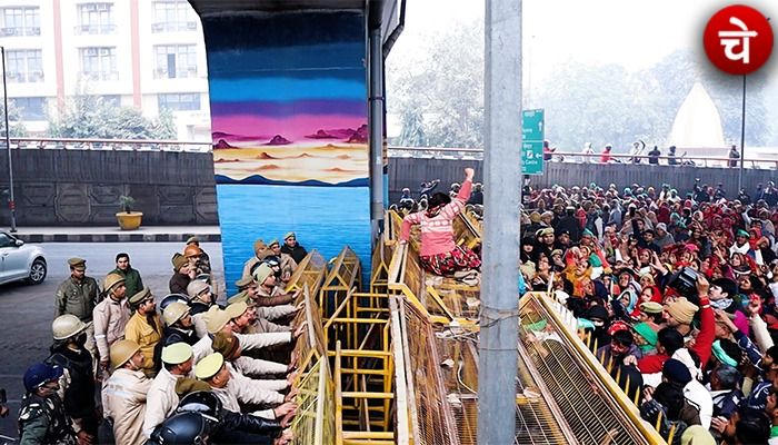 संपूर्ण तालाबंदी के ऐलान के बाद किसानों ने जब एनटीपीसी मुख्यालय की तरफ कूच किया तो नोएडा पुलिस ने बैरिकेड लगाकर किसानों को रोक दिया