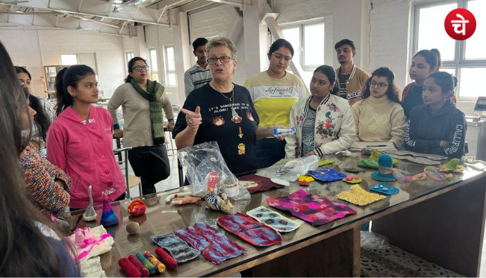 इस दौरान प्रो. माया कीस्कगेन्स ने कहा कि रियल वूल फेल्टिंग एक प्राचीन तकनीक है, जिसमें उन को आपस में मिलाकर उसे धागों के साथ नए आकार दिया जाता है। इस प्रक्रिया से हम किसी भी उत्पादों के नए डिजाइन को तैयार कर सकते हैं। वहीं अपसाइक्लिंग डेनिम इको फ्रेंडली तकनीक है, जिसमें पुराने डेनिम के कपड़ों को पुन: उपयोग कर नए एवं आकर्षक उत्पाद तैयार करते हैं।