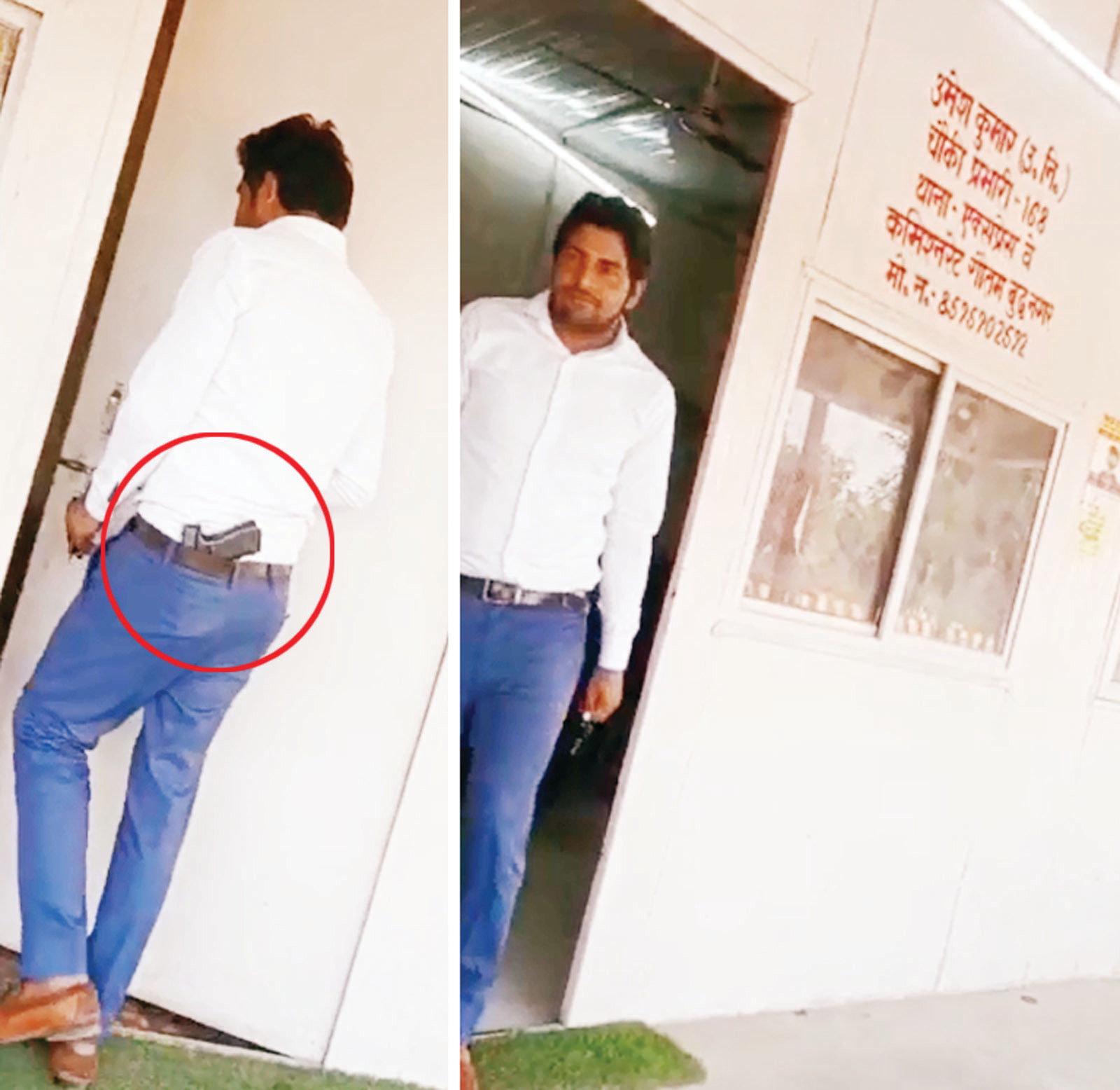 थाना एक्सप्रेस-वे की चौकी 168 पर तैनात दरोगा उमेश कुमार ने अपनी पिस्टल पुलिस मित्र याकुदपुर निवासी नागेश कुमार को सौंप दी और वे फ्रेश होने चले गए। नागेश कुमार ने पिस्टल अपनी पीठ पर लगा ली जिसका किसी ने वीडियो बना लिया और उसे वायरल कर दिया। इसका संज्ञान एडिशनल डीसीपी रणविजय सिंह ने लिया। उन्होंने बताया कि चौकी प्रभारी और पुलिस मित्र के खिलाफ कार्रवाई की जाएगी।