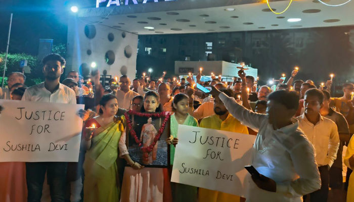 Read More - Noida News : फूलन देवी का बेटा हुआ लापता, पुलिस ने दर्ज की FIRपारस टियरा सोसायटी के नागरिकों ने सुशीला देवी के चित्र पर पुष्प अर्पित किए। उन्हें पुष्पांजलि देने के बाद सोसायटीवासियों ने न्याय की मांग करते हुए कैंडल मार्च निकाला। इस कैंडल मार्च में बड़ी संख्या में बच्चे, बुजुर्ग व महिलाएं शामिल हुए। मार्च में शामिल नागरिक बेहद आक्रोश में नजर आ रहे थे। उन्होंने हाथ में कैंडल तथा Justice for Sushila Devi लिखे पोस्टर ले रखे थे। सुशीला देवी के परिवारजन भी कैंडल मार्च में शामिल थे।
