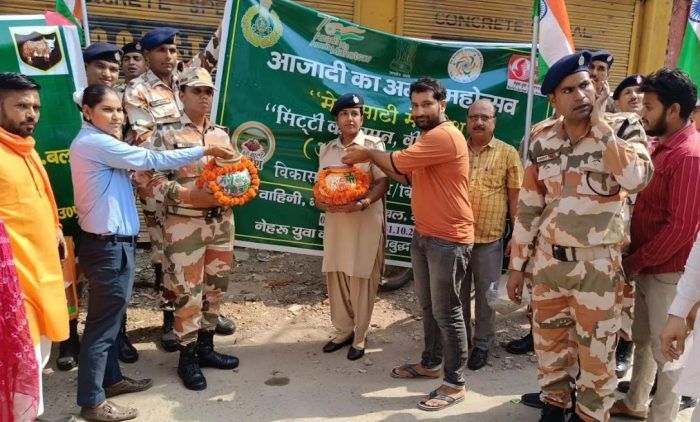 मेरी माटी मेरा देश अभियान के अवसर पर नेहरू युवा केंद्र की जिलाधिकारी स्निग्धा सिंह, वी लेखाकार प्रमोद अख्तर तथा दिनेश शर्मा आदि सम्मानित जन विशेष रूप से उपस्थित रहे।