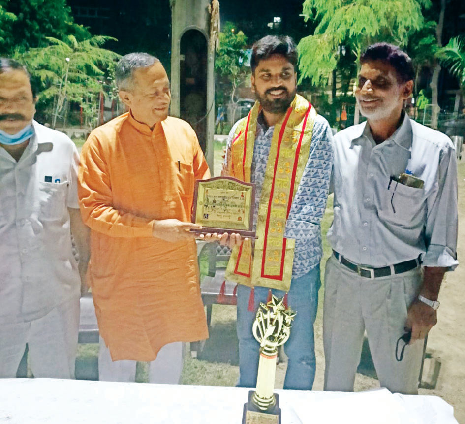 नोएडा । सेक्टर-34 में प्रदेश के मुख्यमंत्री योगी द्वारा पुरस्कृत एक हाथ से क्रिकेट खेलने वाले खिलाड़ी विश्ववर्धन भाटी को आज आरडब्ल्यूए द्वारा आयोजित कार्यक्रम में उत्तर प्रदेश गन्ना किसान संस्थान के अध्यक्ष (दर्जा प्राप्त मंत्री) नवाब सिंह नागर ने सम्मानित किया।
