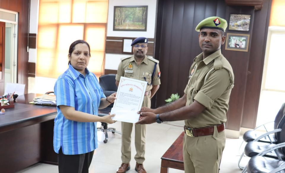 पुलिस कमिश्नर लक्ष्मी सिंह ने नारकोटिक्स सेल में तैनात हेड कांस्टेबल सनी बत्रा तथा थाना दादरी में तैनात आरक्षी अनुज कुमार को नगद इनाम व प्रशस्ति पत्र देकर सम्मानित किया। उन्होंने दोनों पुलिसकर्मियों द्वारा अपराधियों के खिलाफ कार्रवाई के दौरान दिखाए गए अदम्य साहस की सराहना करते हुए उनका हौसला बढ़ाया। उन्होंने कहा कि ड्यूटी के दौरान कर्तव्य परायणता के साथ अदम्य साहस दिखाते हुए अपराधियों को दबोच कर सराहनीय कार्य किया है।