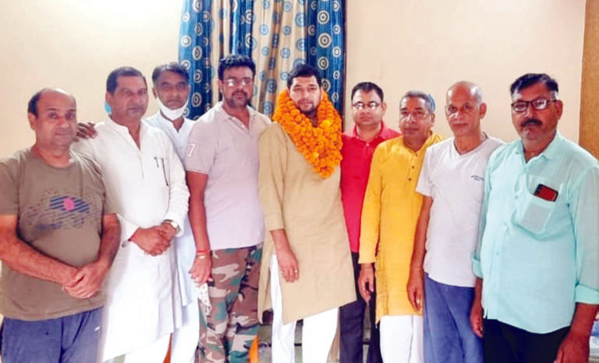 नोएडा । भाजपा नेता अमित त्यागी को भाजपा किसान मोर्चा के प्रदेश सह मीडिया प्रभारी बनाए जाने पर ग्राम भंगेल वासियों ने ढोल नगाड़े बजाकर फूल माला पहनाकर स्वागत किया।