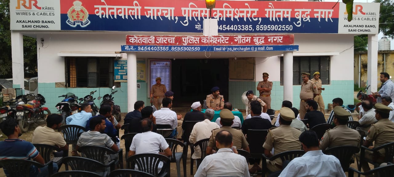 अफवाह फैला कर माहौल बिगाड़ने वाले लोगों की जानकारी तुरंत पुलिस को दें जिससे उनके खिलाफ कड़ी कार्रवाई की जा सके। उन्होंने बताया कि मोहर्रम के जुलूस के दौरान ड्रोन के माध्यम से पुलिस द्वारा कड़ी नजर रखी जाएगी। इसके अलावा सोशल मीडिया प्लेटफॉर्म की भी पुलिस द्वारा लगातार मॉनिटरिंग की जा रही है। कोई भी व्यक्ति किसी प्रकार की अफवाह फैलाते हुए पकड़ा गया तो उसके विरुद्ध कड़ी कार्रवाई को अमल में लाया जाएगा। बैठक में अपर पुलिस आयुक्त कानून व्यवस्था आनंद कुलकर्णी के साथ ग्रेटर नोएडा जोन के एडीसीपी अशोक कुमार, एसीपी टू ग्रेटर नोएडा सार्थक सेंगर, थाना प्रभारी ज्ञान सिंह सहित जारचा व अन्य गांवों के संभ्रांत लोग उपस्थित थे।