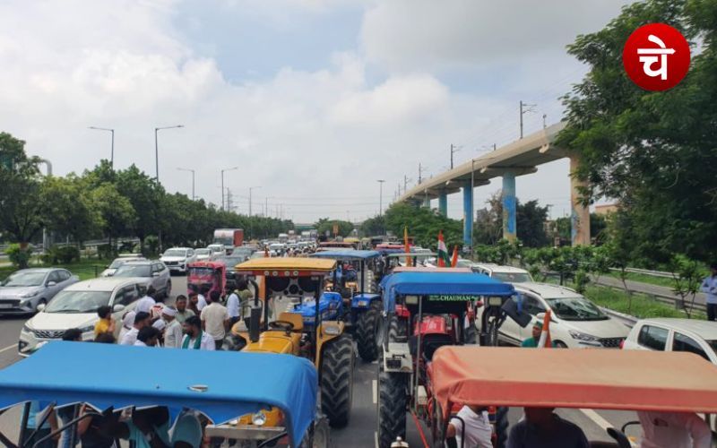 ग्रेटर नोएडा में किसानों ने सड़कों पर निकाला ट्रैक्टर मार्च
