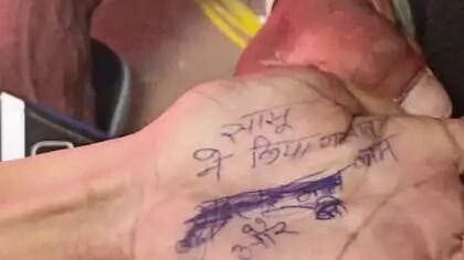 हाथ में लिखा था नोट, लाइनें मिटाने का प्रयास