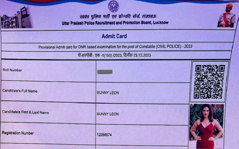 फ़िल्म स्टार सनी लियोनी होगी उत्तर प्रदेश पुलिस में भर्ती, जारी हुआ एडमिट कार्ड